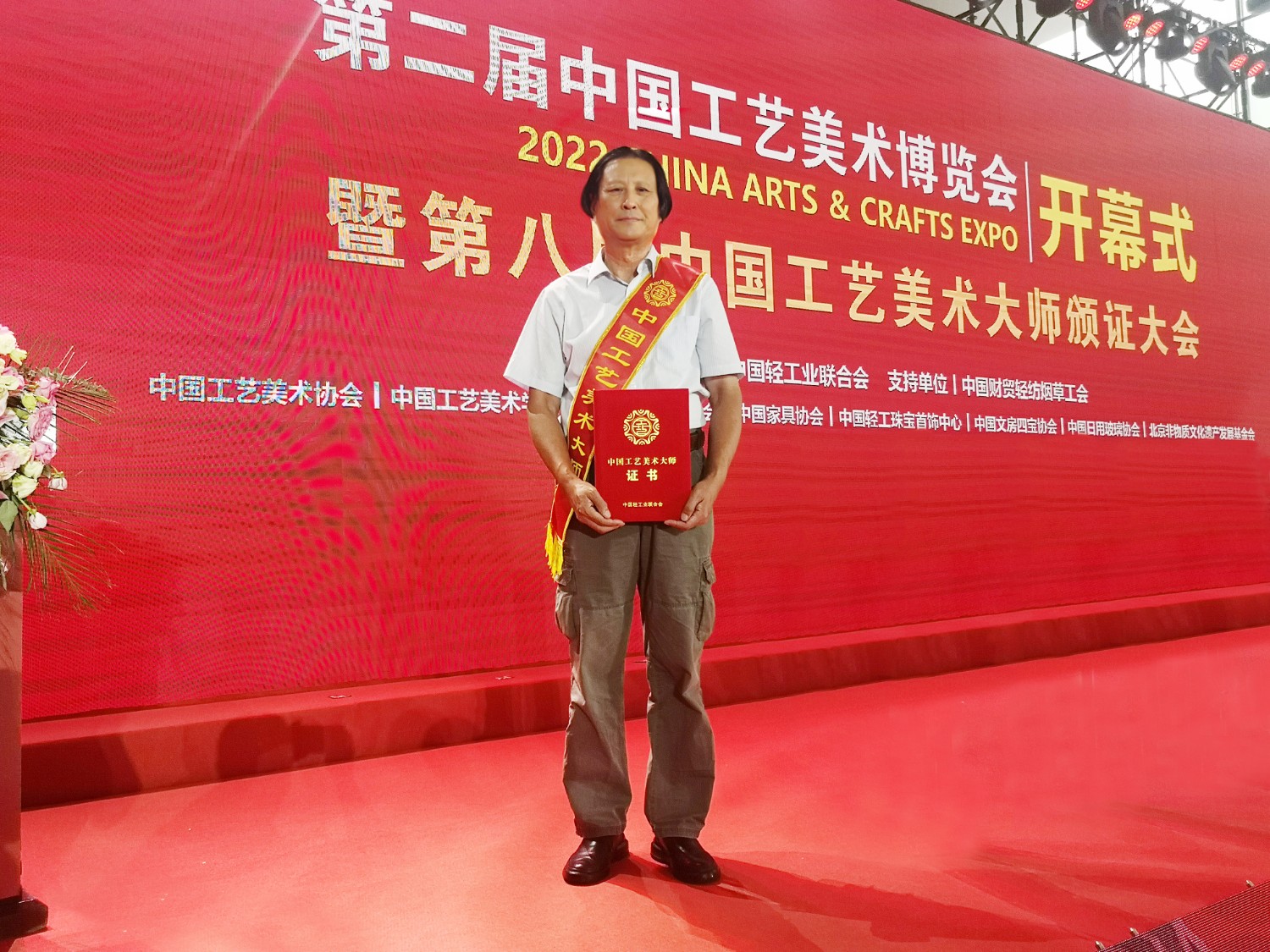 2022年8月18日上午,由中國輕工業(yè)聯(lián)合會主辦、中國財貿(mào)輕紡工會支持,中國工藝美術(shù)協(xié)會、中國工藝美術(shù)學(xué)會、中國陶瓷工業(yè)協(xié)會、中國家具協(xié)會、中國輕工珠寶首飾中心等協(xié)辦的“第二屆中國工藝美術(shù)博覽會”在南京國際會展中心隆重開幕。同時,在工信部指導(dǎo)下,舉行了“第八屆中國工藝美術(shù)大師”頒證大會。
