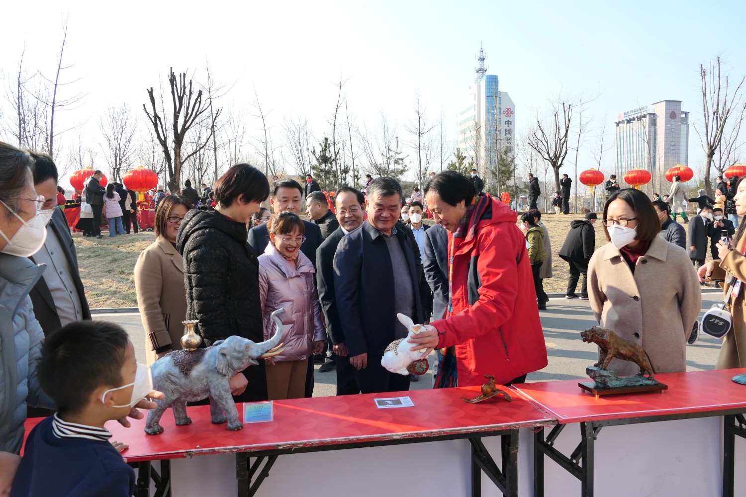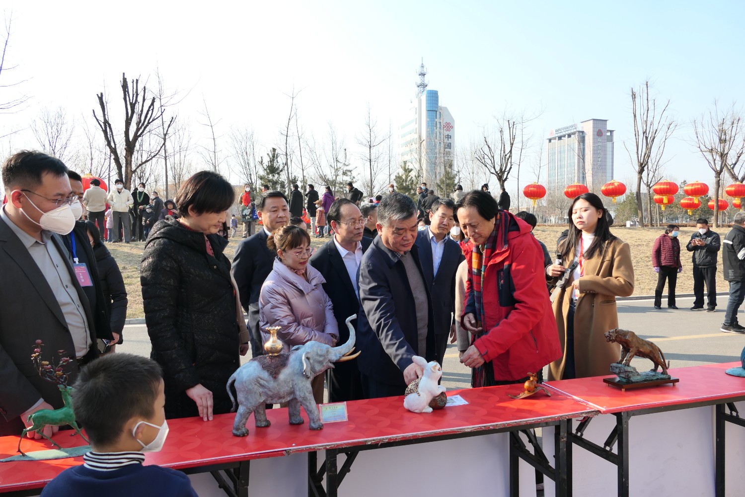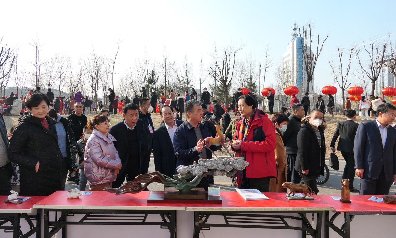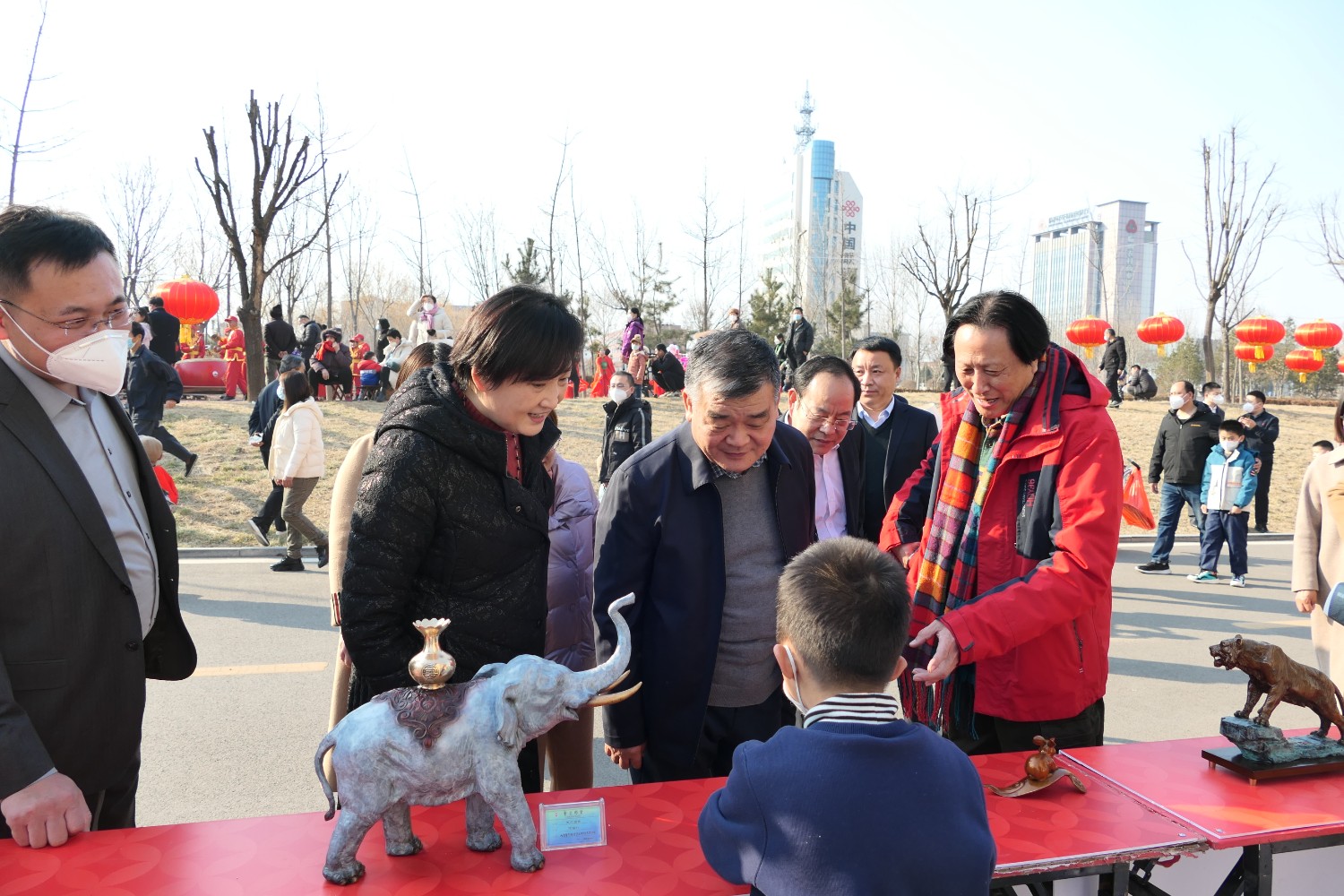 2023年2月4日,國潮嘉年華臨朐縣民俗節(jié)日節(jié)慶活動啟動儀式在縣文化中心隆重舉行。濰坊市文旅局苗慶安副局長,濰坊市非遺保護中心主任范新建,臨朐縣人大副主任倪若強等領(lǐng)導(dǎo)在副縣長張惠玉的陪同下參觀華藝展區(qū),中國工美藝術(shù)大師傅紹相向領(lǐng)導(dǎo)嘉賓介紹文創(chuàng)作品。