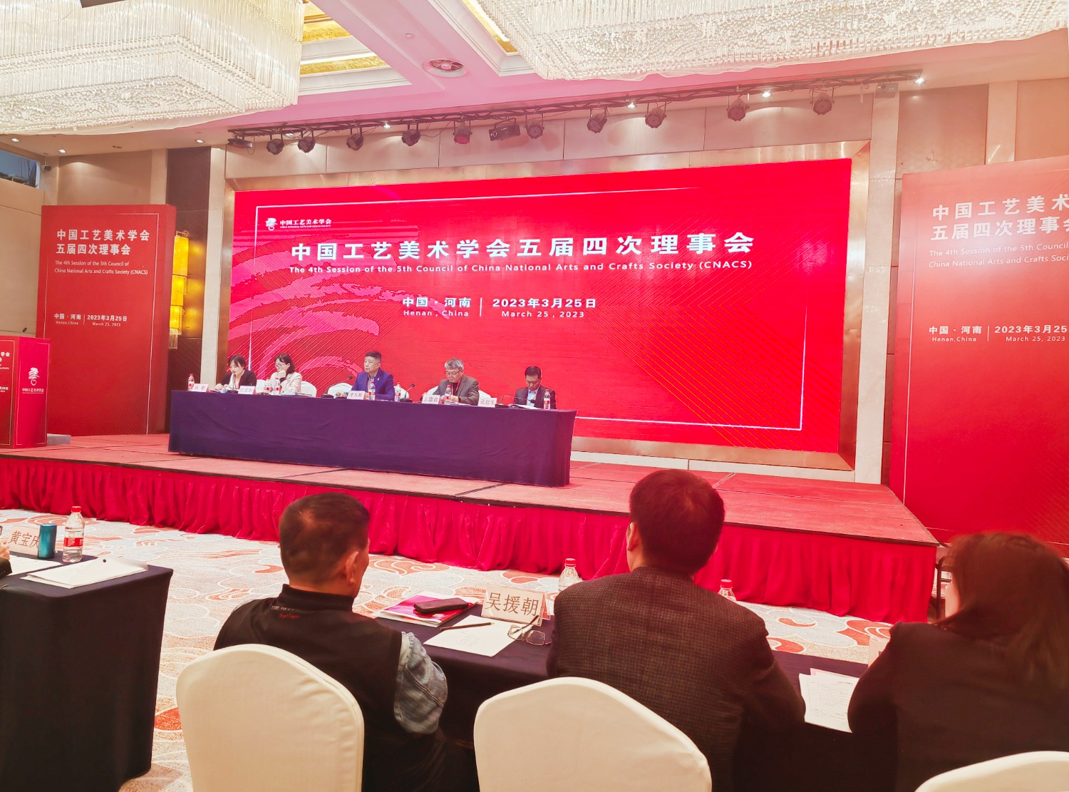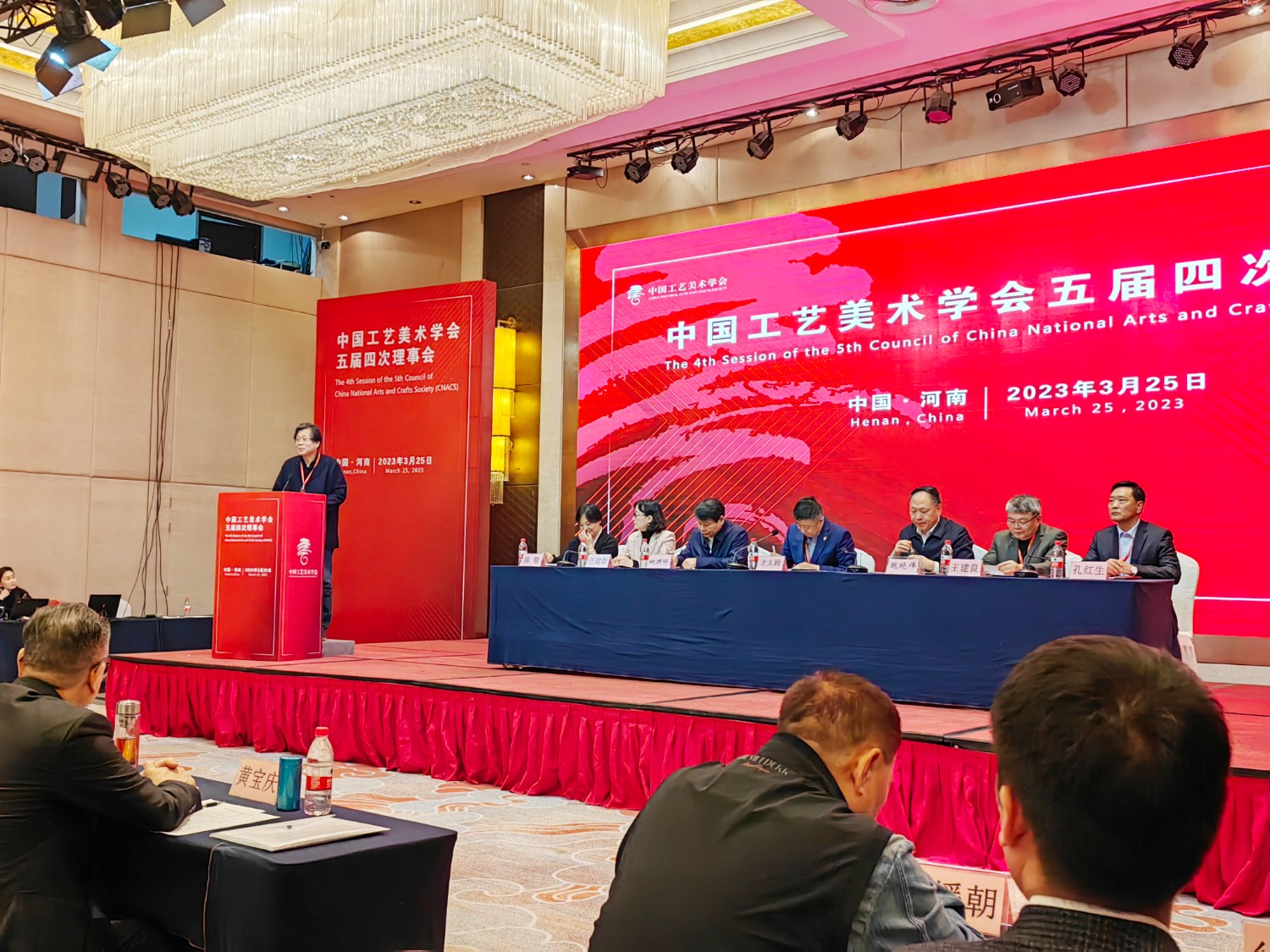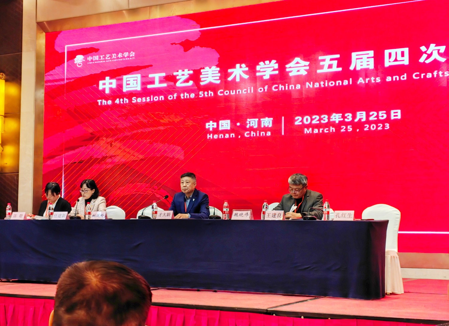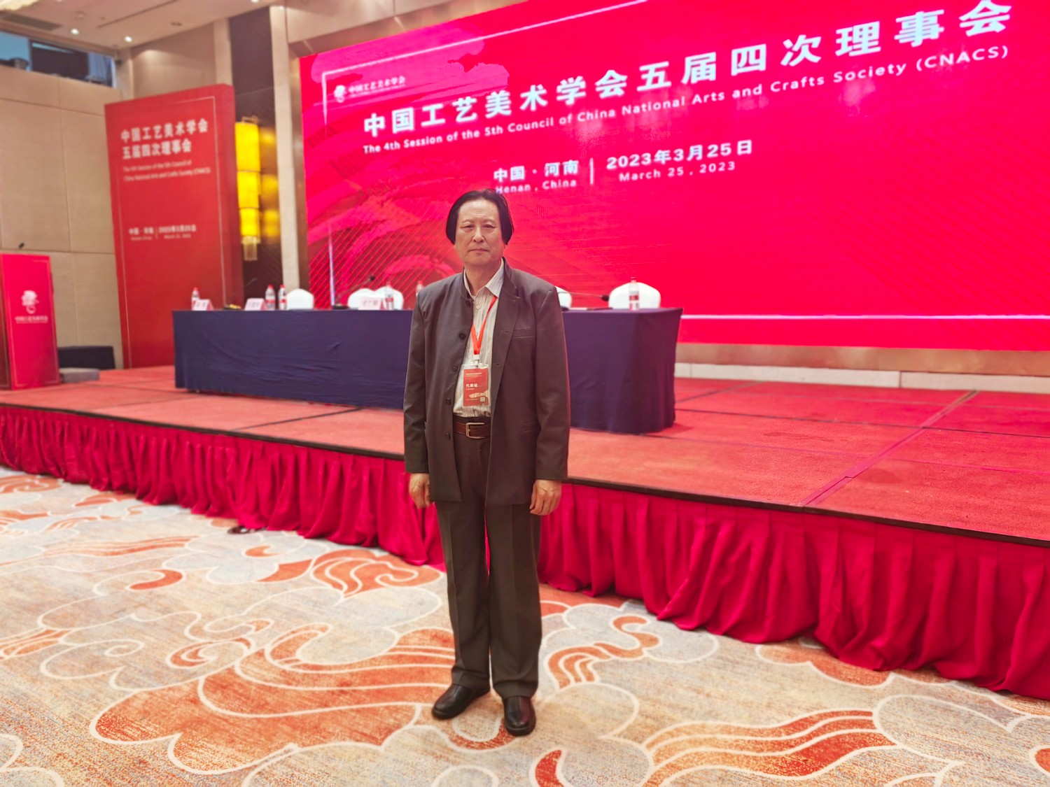 2023-7-112023年3月25日,中國工藝美術(shù)學(xué)會(huì)五屆四次理事會(huì)在鄭州天鵝大酒店會(huì)議大廳隆重召開。本次大會(huì)由河南省工藝美術(shù)行業(yè)承辦。出席大會(huì)的領(lǐng)導(dǎo)有河南省人民政府副秘書長魏曉偉,河南省工信廳一級(jí)巡視員姚延嶺,省政府秘書處處長劉勁勰,中國工藝美術(shù)學(xué)會(huì)黨委書記、理事長才大穎,黨委副書記監(jiān)事長王建良,駐會(huì)副理事長任建新,以及學(xué)會(huì)副理事長王建中、呂品田、周本田、孟繁民、袁敏等,理事會(huì)、監(jiān)事成員,各分支機(jī)構(gòu)主要負(fù)責(zé)人、理事代表,特邀代表近300人出席會(huì)議。大家齊聚一堂,共商工藝美術(shù)發(fā)展良策,共謀工藝美術(shù)發(fā)展之大計(jì)。學(xué)會(huì)常務(wù)理事傅紹相出席本次會(huì)議。