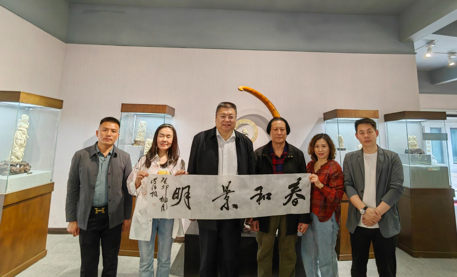 2023年4月9日,在澳門橫琴香洲埠會館與世界文交所劉灃董事長交流文化藝術(shù),贈送劉灃先生雕塑作品《玉兔如意》及書法作品,曹秋蓉、倫九梅兩位總經(jīng)理一同出席交流活動。參觀勵(lì)駿廣場、橫琴口岸、三樓世界文交所藝術(shù)展廳等。