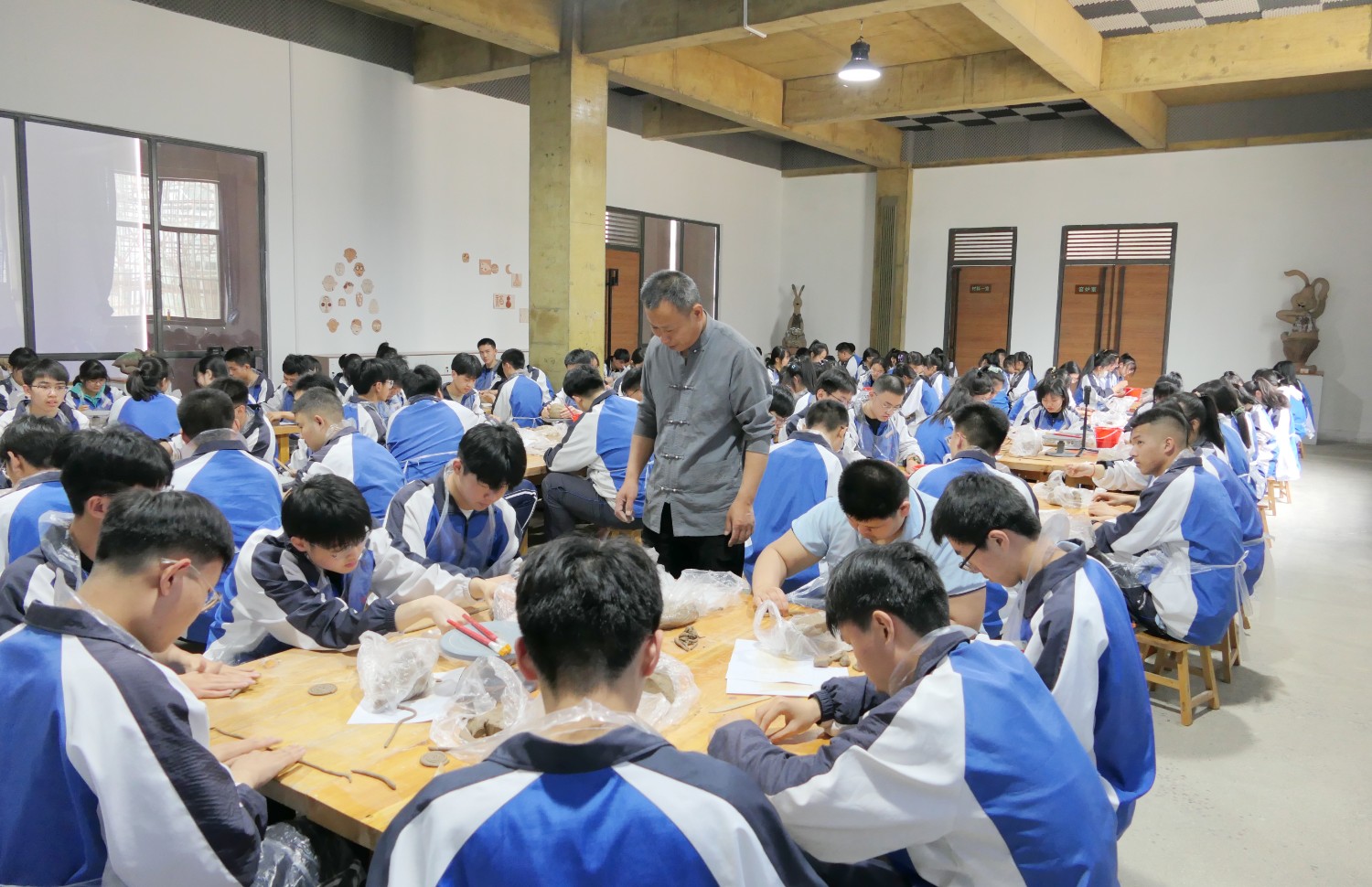 2023年5月20日,臨朐海岳中學(xué)師生四百余名,在學(xué)校老師傅海剛帶領(lǐng)下,蒞臨華藝雕塑參觀學(xué)習(xí)并進(jìn)行陶藝體驗活動,中國工藝美術(shù)大師傅紹相向同學(xué)們講解了雕塑藝術(shù),濰坊市實驗學(xué)校副校長呂瑩陪同活動。