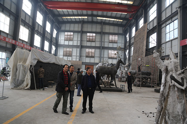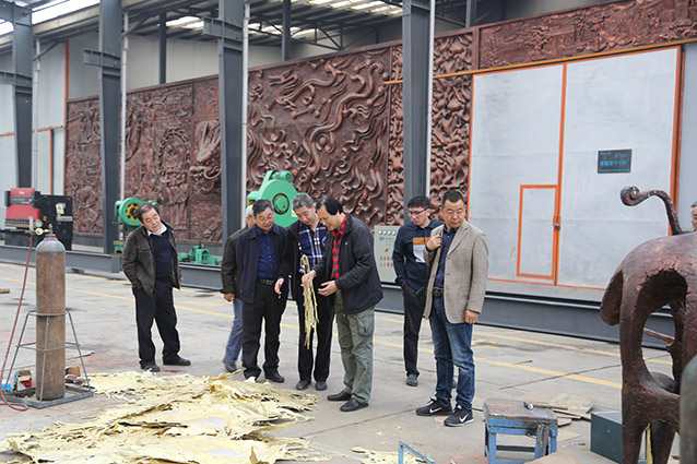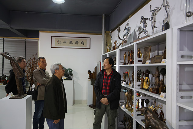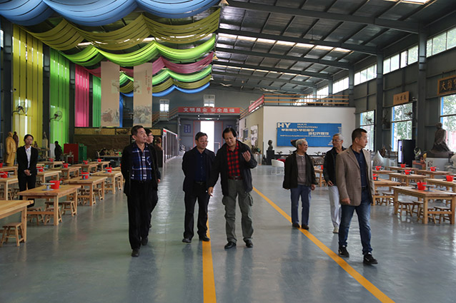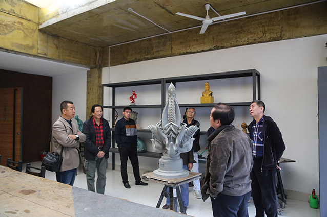 2019年10月23日,博山金祥琉璃有限公司袁總、山東陶瓷學(xué)院院長(zhǎng)耿大海、中國(guó)工藝美術(shù)大師王孝誠(chéng)、雕塑家李友生教授、雕塑家李霽教授,在華藝交流雕塑藝術(shù)